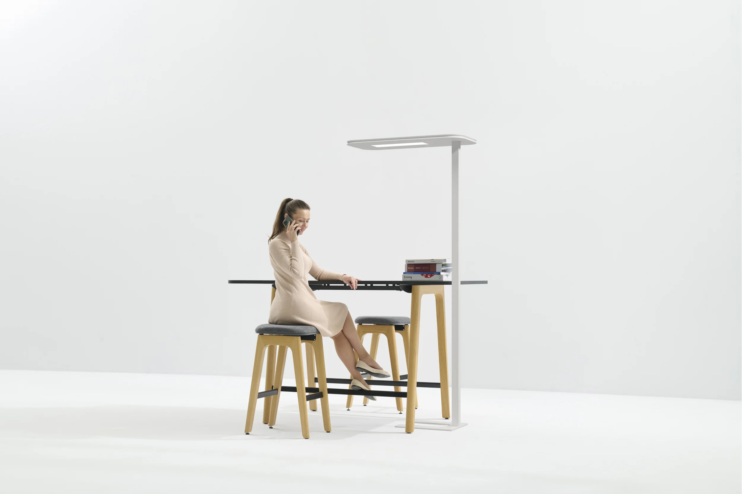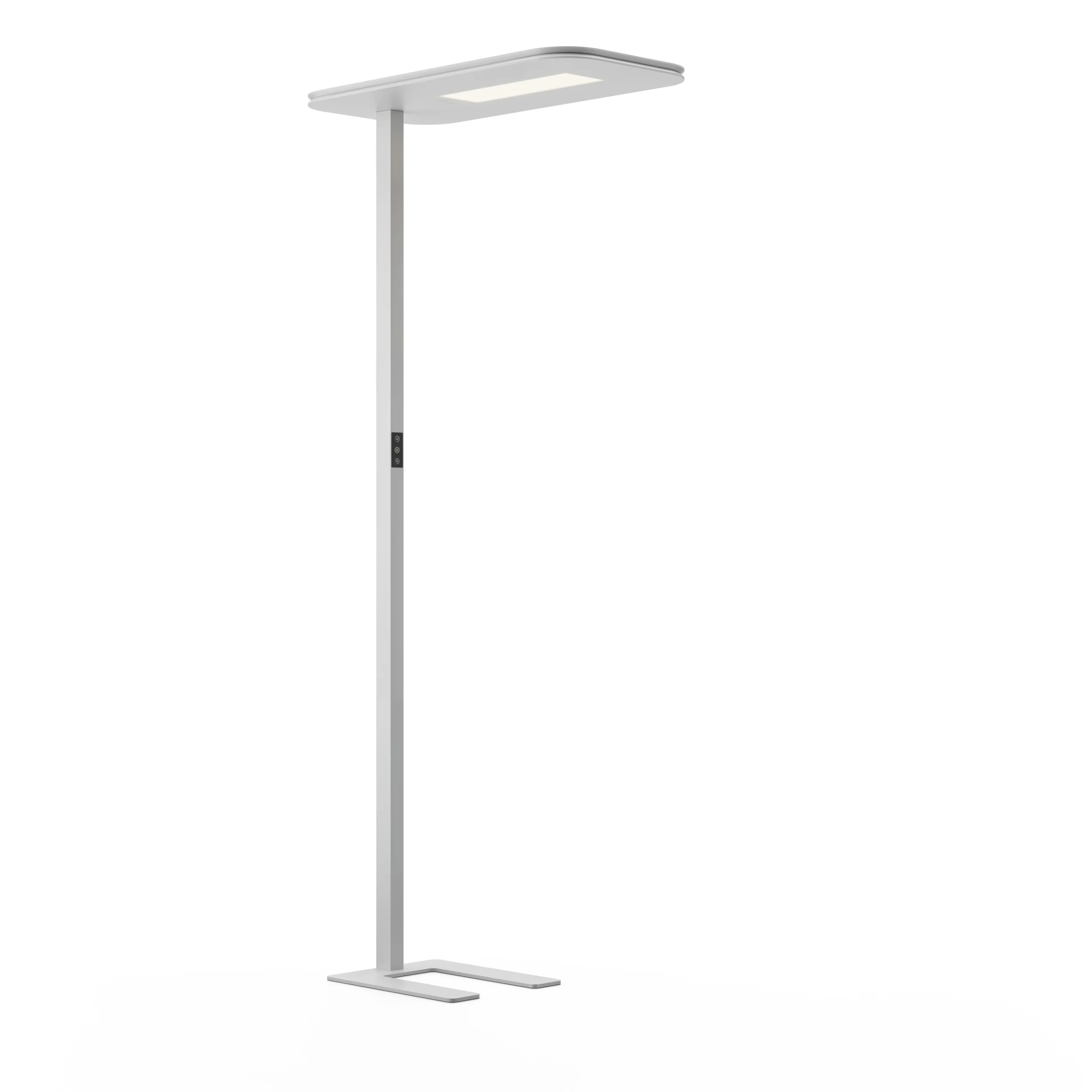 Easy floor is an acoustic floor luminaire with a modern and minimalist style. Integrated die-cast elements and an ultra-thin 23mm lamp head ensure good heat dissipation and an elegant appearance. The desktop light uniformity U0 > 0.7. The interactive control panel allows independent management of direct and indirect lighting. It is made of aluminum and acoustic ecoPET material.